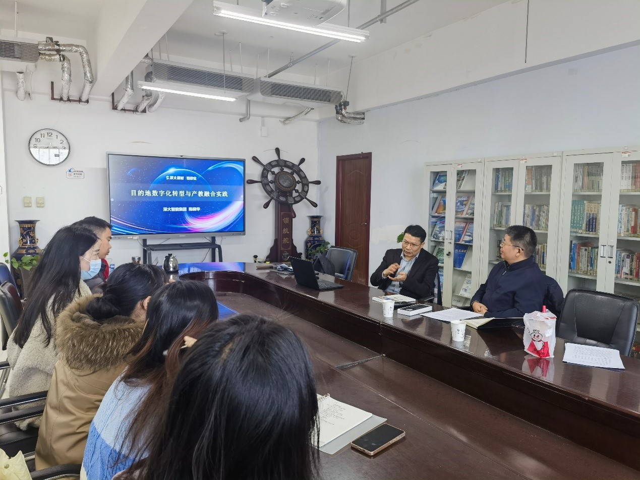 2025年1月9日深大智能集团智慧旅游研究院副院长、数字文旅教育负责人陈晓华受邀为德赢官网师生带来了题为“目的地数字化转型与产教融合实践”的精彩报告。本次会议由学院副院长徐贵宏教授主持,学院旅游管理教研室主任杨慧敏、数字文旅教研室主任尚雯雯,副主任杨群涛、马梦瑶以及教工党支部书记杨婷等多位教师和2023级本科生代表参加了此次报告。