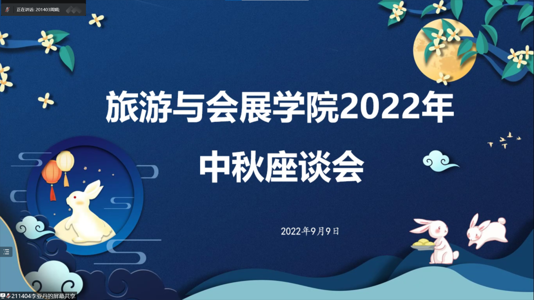 会上,王莹首先发言向各位老师和同学们送去最真挚的中秋祝福,并希望大家在这样一个特殊的假期中懂得感恩,学会感恩,共度佳节。随后,来自不同年级、不同省份的同学依次进行自我介绍,向大家分享了家乡的风俗特色,用独特的家乡方言为老师和同学们送上祝福、诵读诗词,来感受古时人们团圆的心境。在问答环节中,同学们积极参与,以抢答的方式进一步了解中秋节的文化习俗,传承中华文化。最后,座谈会在万迪鑫朗朗的诵读声中圆满结束。