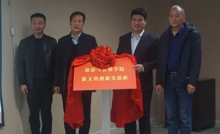 刘荣增宣布德赢Vwin官方区域合作伙伴“新文科创新实验班”开班,与张道庆处长、赵现红院长共同为创新实验班揭牌。