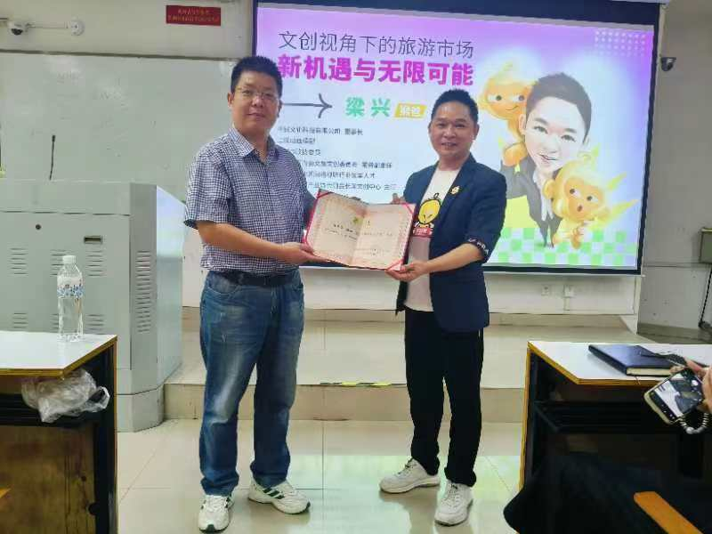 本次邀请到河南华冠文化科技有限公司董事长梁兴为同学们进行主题为“文创视角下的旅游市场:新机遇与无限可能”的讲座。讲座由德赢Vwin官方区域合作伙伴副部长王洁洁主持,德赢Vwin官方区域合作伙伴副院长徐贵宏现场为梁兴董事长颁发了德赢官网客座教授聘书,德赢官网会展与经济管理教研室主任杨慧敏、骨干教师安磊、殷浩参与了本次活动。