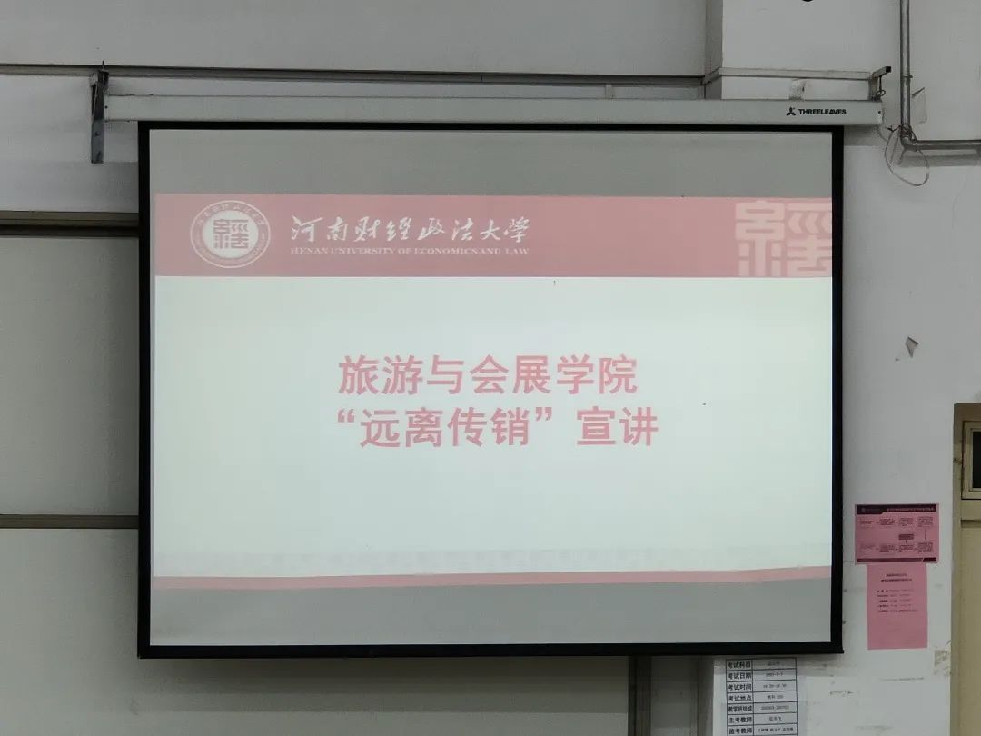 会上,马超通过一系列典型案例的分析、防范传销的基本方法的讲解,让同学们知晓了当前传销活动采取的新方式,向大家讲述了大学生深陷传销陷阱的各种原因,展示了传销的危害与骗术。他告诫同学们要自觉抵制传销,做好自身安全防范,提高区分直销和传销、识别防范传销的能力。同学们纷纷表示,在以后的生活中一定会认清非法传销的伪装,加强自我防范,远离传销、拒绝传销。