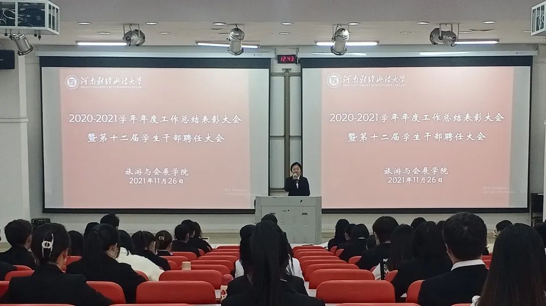 11月26日,德赢Vwin官方区域合作伙伴于第二教学楼220教室召开2020-2021学年年度工作总结表彰大会暨第十二届学生干部聘任大会。学院党委书记原方、党委副书记王莹、团委书记蔡萌、团委副书记马超出席会议,学生张懿靖担任主持人,团学主要学生干部、受表彰同学及2019—2021级学生代表参加会议。
