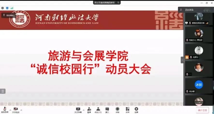 为积极宣传国家学生资助政策,推动学生资助工作的持续开展,11月22日,德赢Vwin官方区域合作伙伴于腾讯会议举办“诚信校园行”学生资助知识竞赛暨十佳学生资助政策宣传大使动员大会。学院2020级学生郭腾担任主讲人,相关人员准时参会。