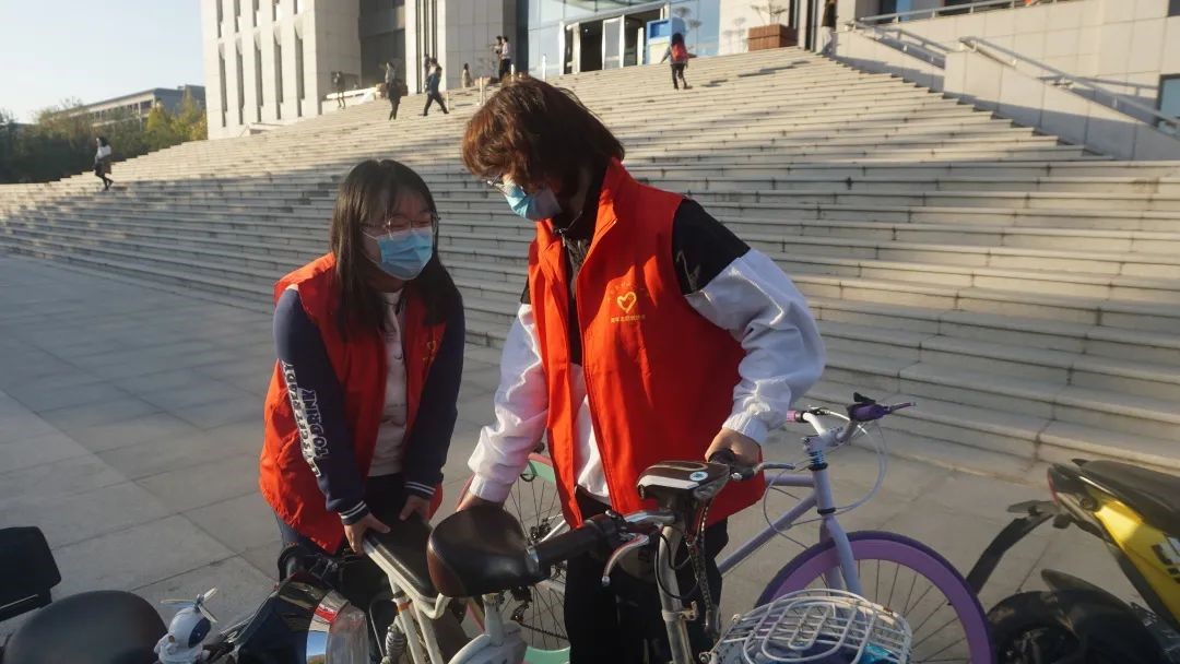 活动期间,德赢官网志愿者分为两队,井然有序地来到各自分配任务的地点,他们身穿红色马甲,将车辆统一摆放于规定车位内,耐心引导停车的同学遵守秩序、规范停车、保持车场整洁,倡导大家做文明的骑行者,并协助管理员打扫图书馆南门通道,以实际行动引领同学们共同建设文明校园。