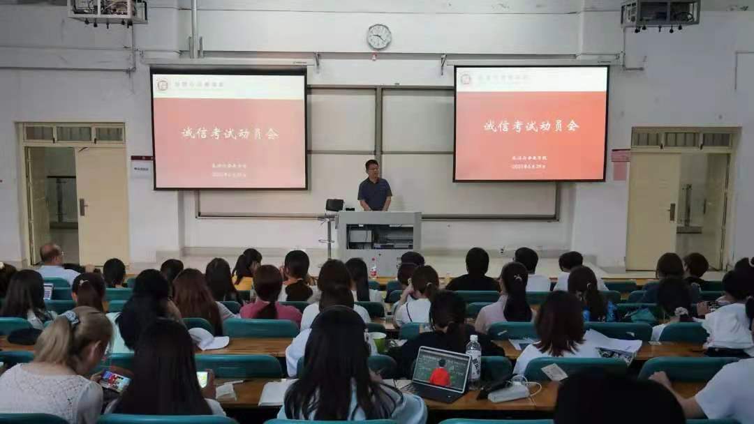 6月29日,德赢官网于教学科研楼209教室召开诚信考试动员会,院党委副书记徐斌、副院长徐贵宏出席会议,2018、2019级学生代表、2020级全体成员参加会议。