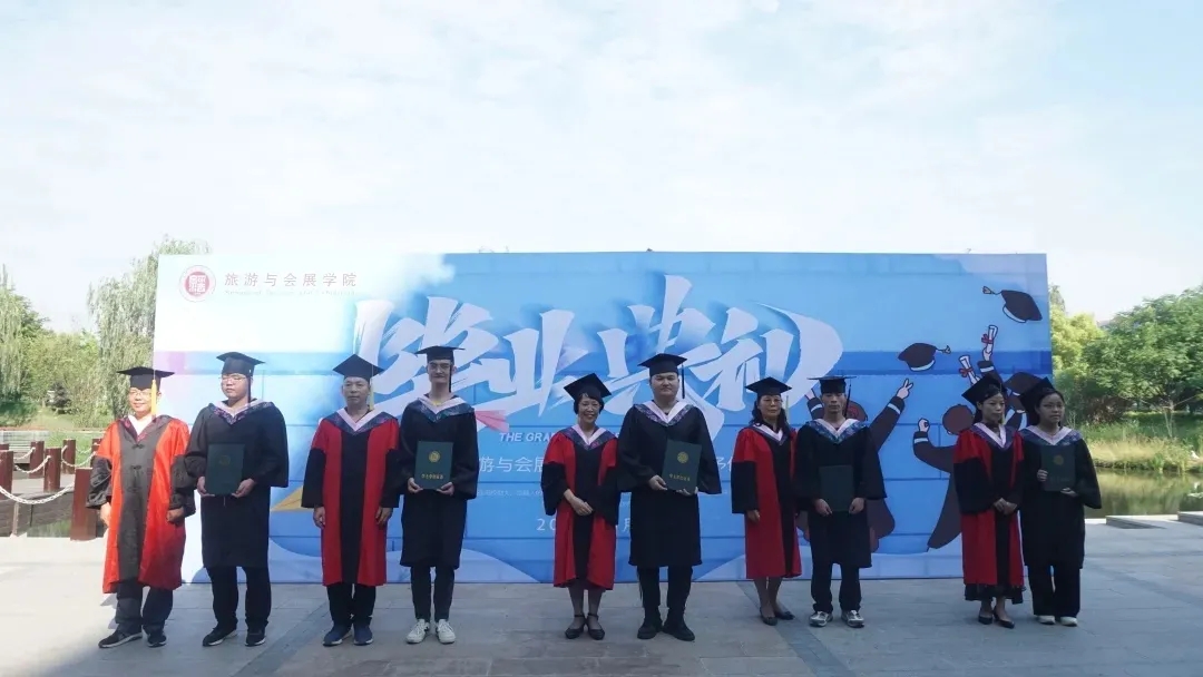 仪式正式开始前,同学们与老师们进行了亲切的交流,感谢老师们四年以来的谆谆教导与悉心栽培。徐斌向大家介绍了本次学位授予仪式的具体流程和注意事项。仪式在悠扬的歌声中正式开始,毕业生们身着学士服,各位老师为他们拨穗正冠、颁发学位证书,并进行合影留念。珍贵的学位证书是每一位学子的收获,拨穗授位是每一位旅展学子的毕业礼。愿毕业生们前程似锦,来日方长!