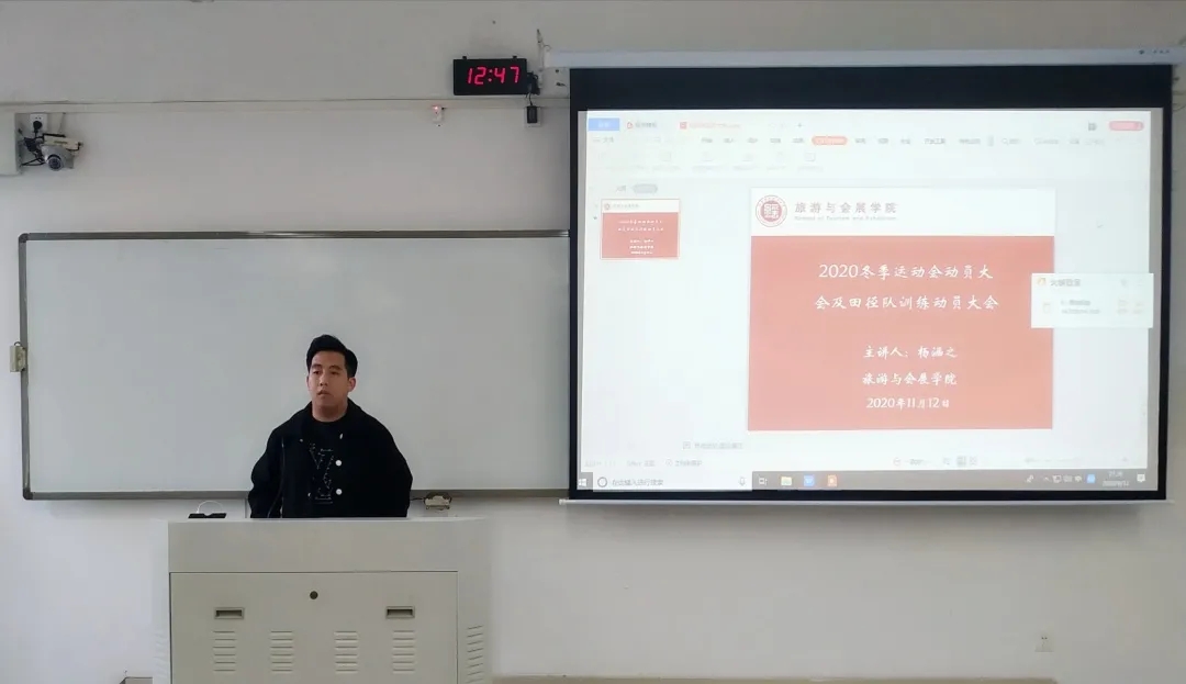11月12日,德赢Vwin官方区域合作伙伴在第一教学楼203教室召开2020冬季运动会动员大会及田径队训练动员大会,学生杨涵之担任主讲人,田径队全体成员及运动员到场参加。