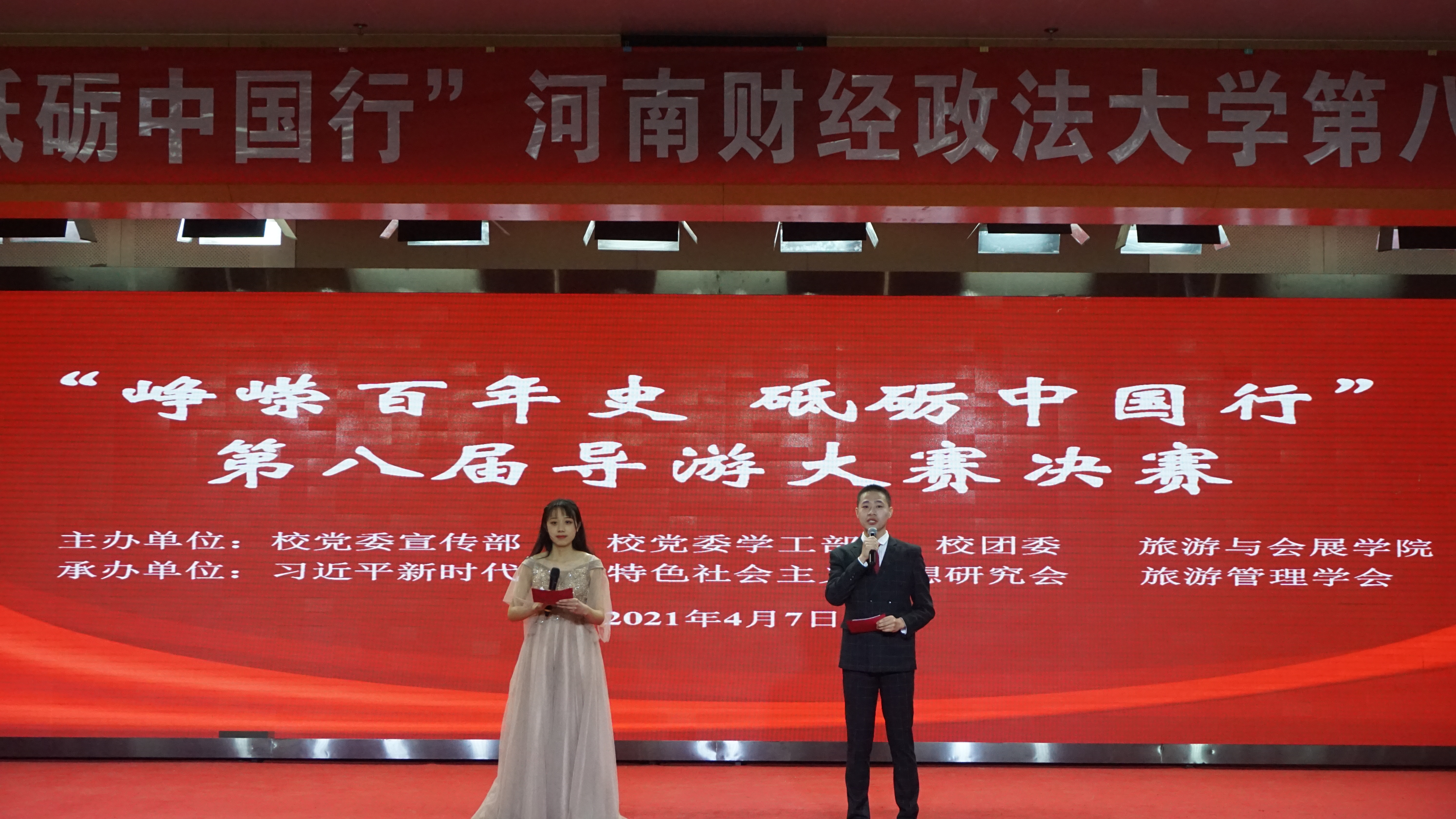 4月7日,由德赢Vwin官方区域合作伙伴党委宣传部、党委学工部、校团委、德赢Vwin官方区域合作伙伴主办,习近平新时代中国特色社会主义思想研究会、旅游管理学会承办的德赢官网“峥嵘百年史,砥砺中国行”第八届导游大赛决赛在学校郑东校区图书馆报告厅举行。