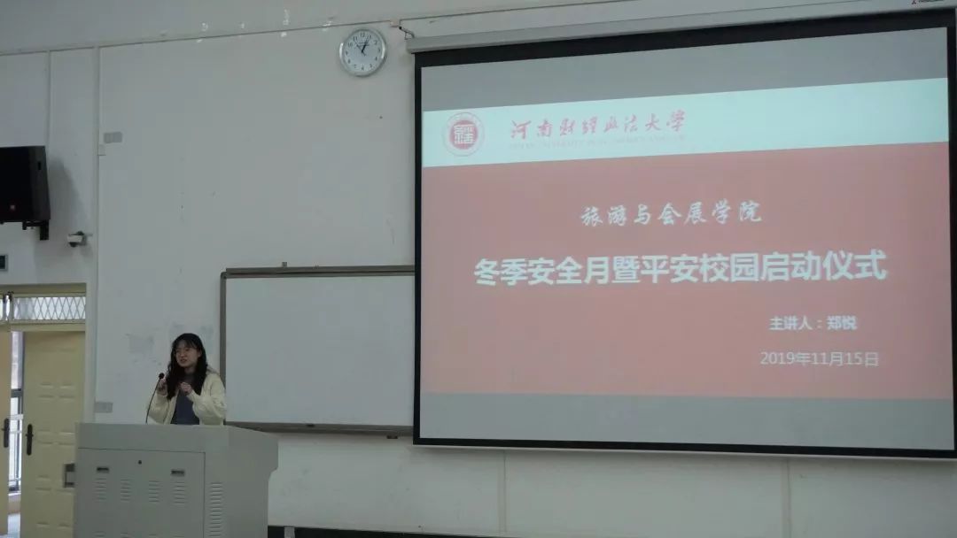 11月15日,德赢Vwin官方区域合作伙伴于建树楼B座101教室举行冬季安全月暨平安校园启动仪式,学生会主席郑悦担任主讲人,学院主要学生干部及2019级新生到场参加。