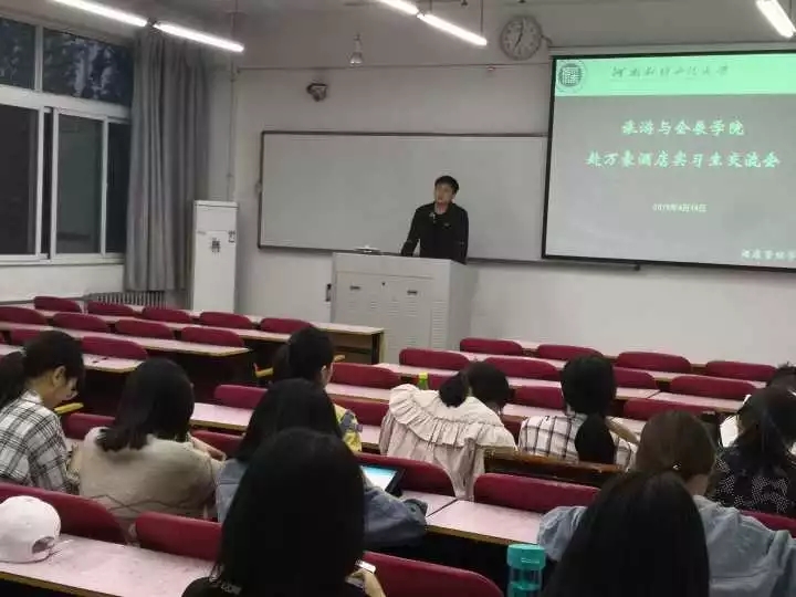 4月18日,德赢官网于第一教学楼203教室开展万豪酒店实习生交流会,16级部分同学到场参加交流会。