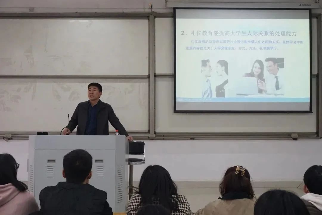 本次青马工程培训的主题为礼仪。何勋通过日常生活中的实例向同学们讲述了礼仪的重要性,并从个人礼仪和人际交往礼仪两方面展开了详细讲解。会上,他对服装礼仪、仪容端庄、目光接触的技巧、面部表情、举止、谈吐礼貌、接待礼仪等方面进行了具体介绍,同时结合事例进行现场演示。他表示,礼仪不只是待人接物的基本规范,也是人际交往的桥梁,更是职业生涯的必需品。最后,他对同学们提出期待,希望同学们可以将所学的礼仪知识运用到实际生活中,成为一名全方位发展的合格学生干部。
