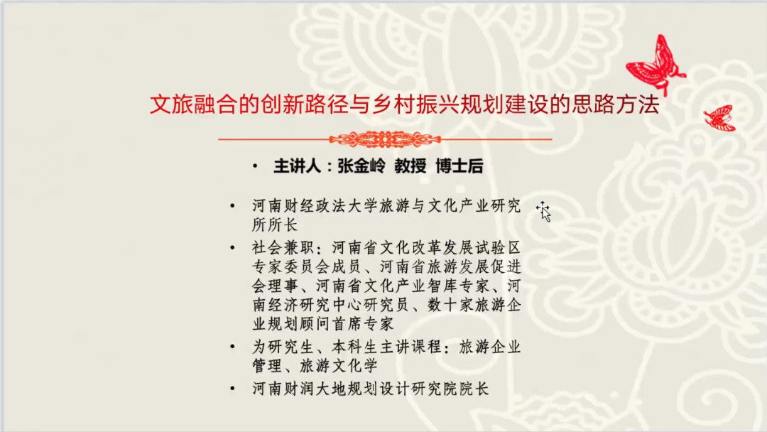 课上,张金岭教授以“文旅融合”为主题展开讲解,详细介绍了文旅融合的意义与内涵、“十四五”时期文旅融合的任务要求,并向同学们介绍了文旅融合的方法和路径。他指出,文旅融合并非新概念,也非舶来品,它能够推动文化事业与旅游产业融合发展,在我国稳增长、促改革、调结构、惠民生的背景下具有重要意义。麦嘉瑞博士则从新媒体的营销和运营、新媒体运营的能力要求两方面让同学们对新媒体有更全面的理解。他特别强调,“新媒体运营”和“新媒体营销”虽然存在相似之处,但在侧重、思维、导向等方面也存在明显差别。最后,他结合自身经历,鼓励同学们学习第二外语,结合专业特色培养外语交流能力,创造属于自己的独特优势,在互联网平台得到不一样的发展。