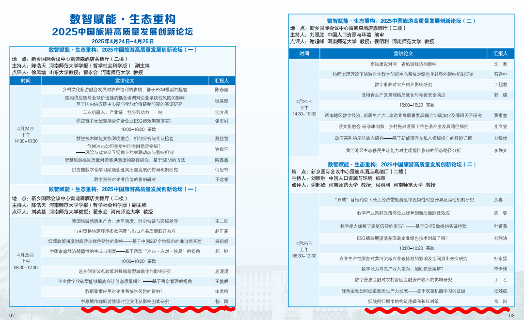 4月23日至25日,德赢Vwin官方区域合作伙伴德赢Vwin官方区域合作伙伴研究生常阳、杨颖赴第八届“旅游经济管理定量研究方法国际会议”暨“数智赋能·生态重构:2025中国旅游高质量发展创新论坛”参加汇报。