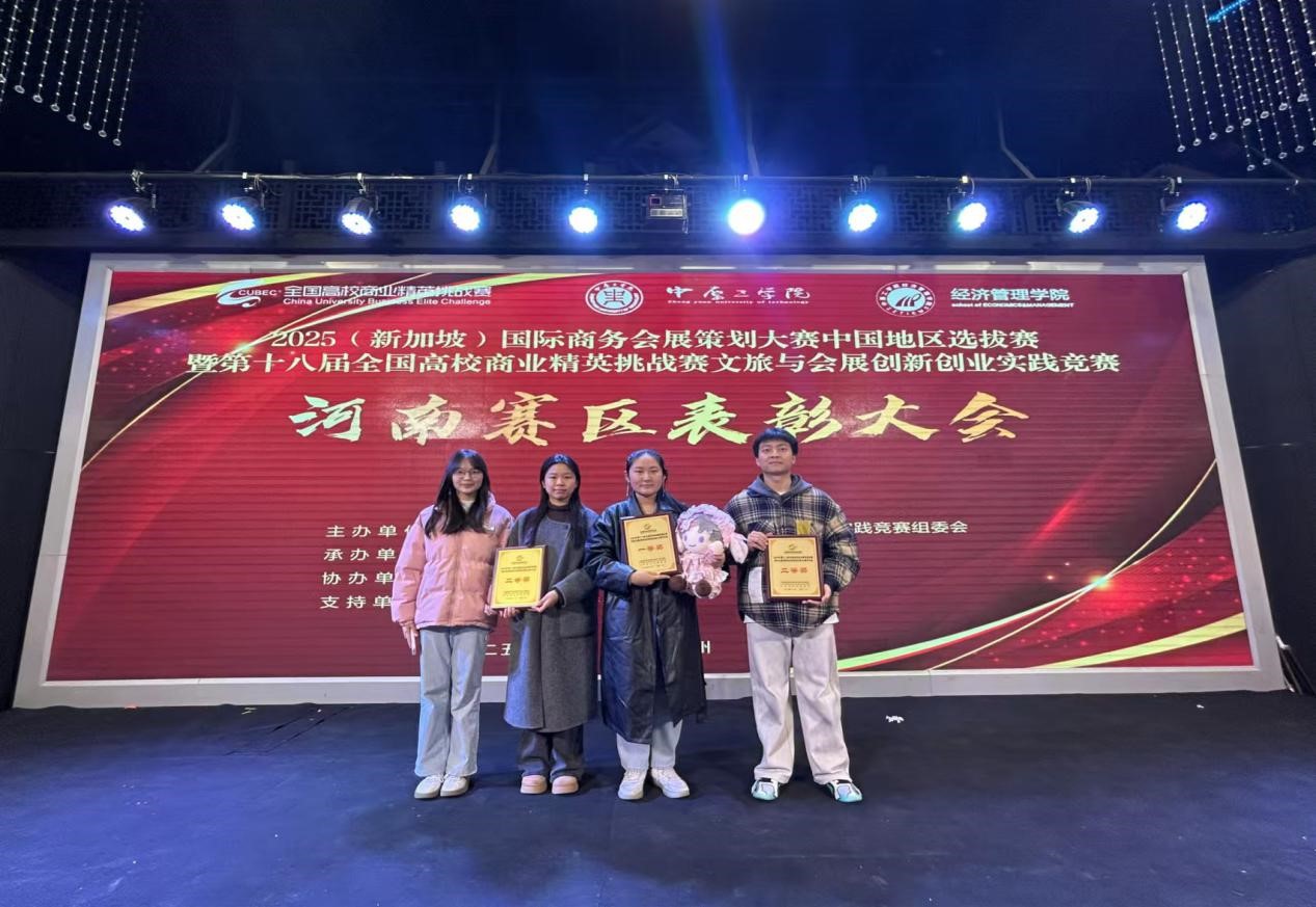 2025年1月4日,由河南省中原工学院承办的2025年(新加坡)国际商务会展策划大赛中国地区选拔赛暨第十八届全国高校商业精英挑战赛文旅与会展创新创业实践竞赛河南赛区表彰大会在郑州成功举办。德赢官网德赢Vwin官方区域合作伙伴副院长徐贵宏带领师生参加此次活动。