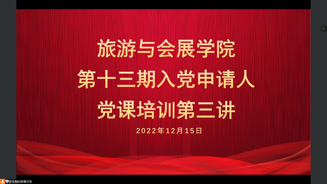 12月15日,德赢Vwin官方区域合作伙伴于腾讯会议开展第十三期入党申请人党课培训第三讲。第十三期入党申请人参会,德赢官网第二教职工党支部书记荣培君担任主讲人。