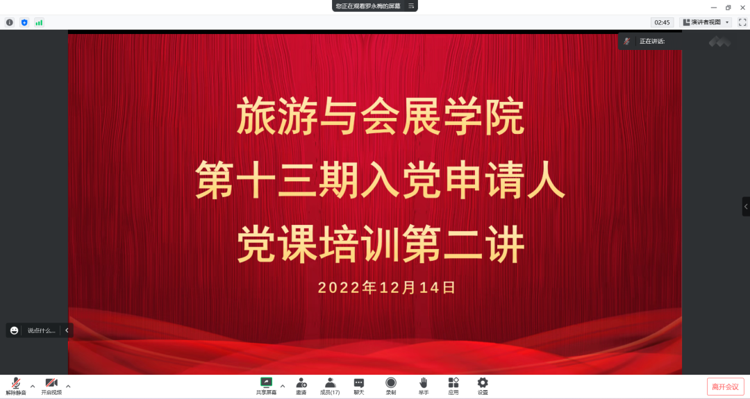 12月14日,德赢Vwin官方区域合作伙伴于腾讯会议开展第十三期入党申请人党课培训第二讲。第十三期入党申请人参加本次培训,学院团委副书记马超担任主讲人。