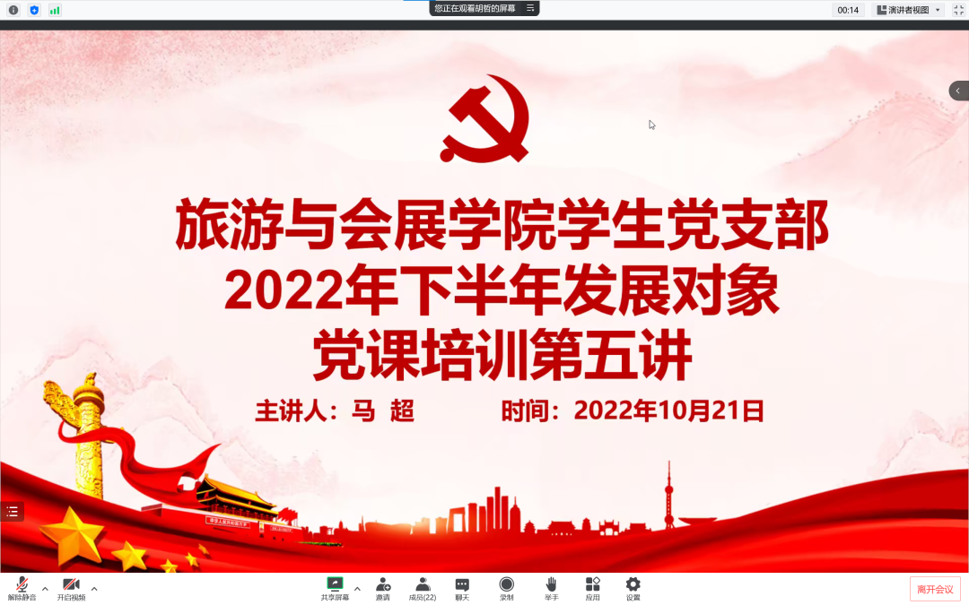 10月21日,德赢Vwin官方区域合作伙伴于腾讯会议开展2022年下半年发展对象党课培训第五讲。全体发展对象参会,德赢官网团委副书记马超担任主讲人。