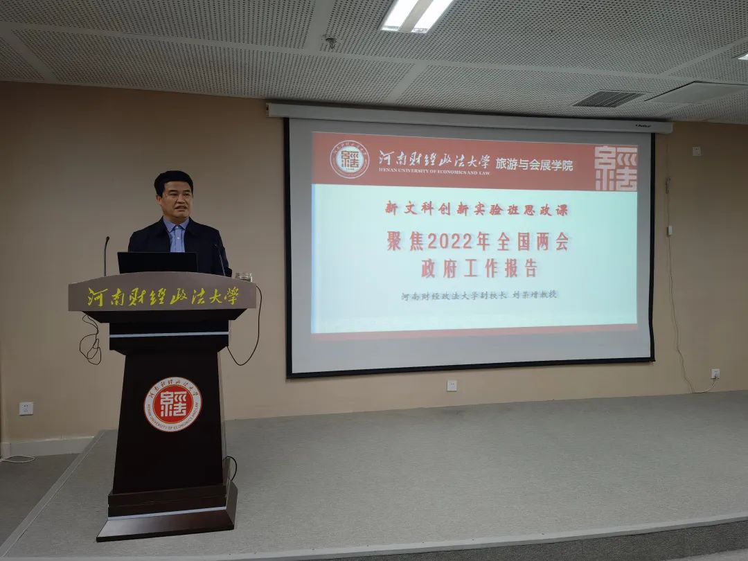 刘荣增以《聚焦2022年全国“两会”政府工作报告》为题,聚焦全国“两会”精神,解读政府工作报告和2022年政策取向、主要预期目标。他指出,今年的全国“两会”是在我国进入全面建设社会主义现代化国家、向第二个百年奋斗目标进军新征程的重要时刻召开的一次重要会议,希望同学们认真学习,深入思考,从全国“两会”精神中汲取不断奋进的动力,努力成长为担当民族复兴大任的时代新人。