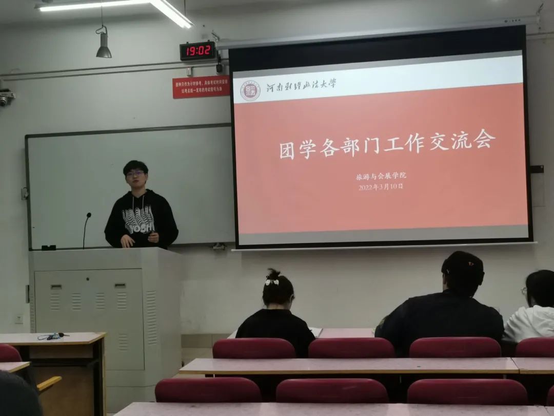 3月14日,德赢Vwin官方区域合作伙伴组织团学各部门于第一教学楼201教室开展工作交流会。学生赵天煜担任主讲人,主要学生干部到场参加。