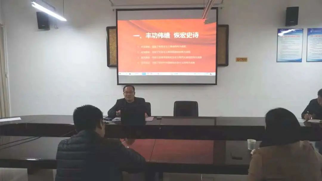 路向峰以“奋斗百年路,启航新征程”为题,从“丰功伟绩,恢宏史诗”、“精神血脉,代代相传”、“以史为鉴,开创未来”三个方面对党的百年奋斗取得的重大成就和历史经验进行了全面总结,深刻阐释了成就百年大党的“十个坚持”的宝贵经验,他指出,党的十九届六中全会是一次具有里程碑意义的重要会议,全体成员需深入学习贯彻党的十九届六中全会精神,用全会精神指导高校教育实践。他结合个人的学习心得,分享了学习体会,并与参会教师进行了深入交流。