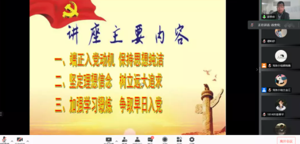 10月14日,德赢Vwin官方区域合作伙伴于腾讯会议开展2021年下半年发展对象党课培训第二讲。学院副院长徐贵宏担任主讲人,全体发展对象参加培训。