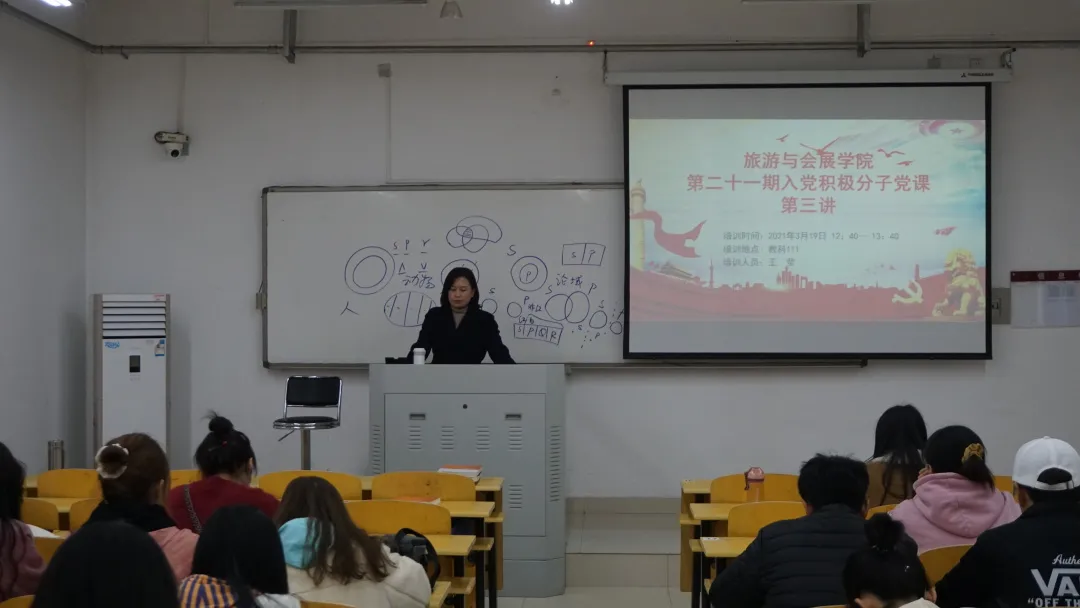 3月19日,德赢Vwin官方区域合作伙伴在教学科研楼111教室召开第二十一期入党积极分子党课培训第三讲,学院副院长王莹担任主讲人,第二十一期入党积极分子到场参加。