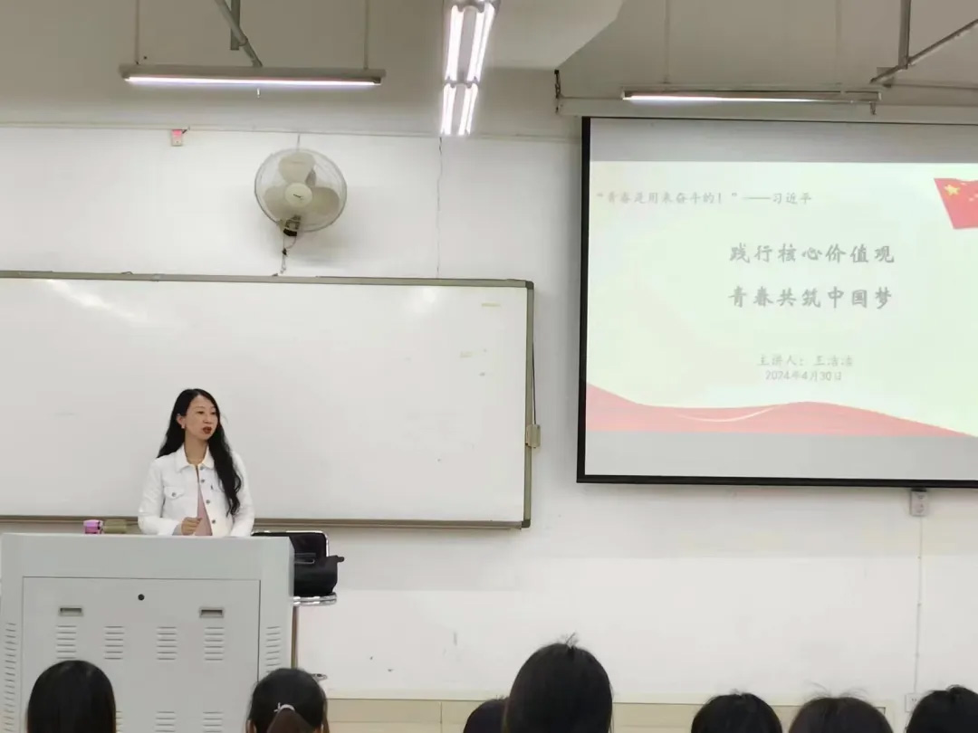 本次党课以“践行核心价值观,青春共筑中国梦”为主题,主要从三个方面展开。首先,王洁洁提醒同学们要认识世界,认识当前所处的时代。她分析了全球化背景下的世界发展趋势,引导学员关注国际动态,拓宽国际视野。她强调,作为新时代的青年,应当认清世界大势,把握时代脉搏,不断提升自身的综合素质,为国家的繁荣稳定贡献力量。紧接着,王洁洁要求同学们正确认识自己,树立正确的价值观。她指出,社会主义核心价值观是每个人的行为准则,是引领大家成长进步的精神灯塔。她鼓励大家深入思考自身价值,明确作为社会主义建设者和接班人的角色定位,树立正确的核心价值观,在社会中立足。最后,她希望同学们能够明确自己的专业方向,将个人发展与行业需求相结合,不贪图安逸享乐,勇于走出自己的舒适圈。