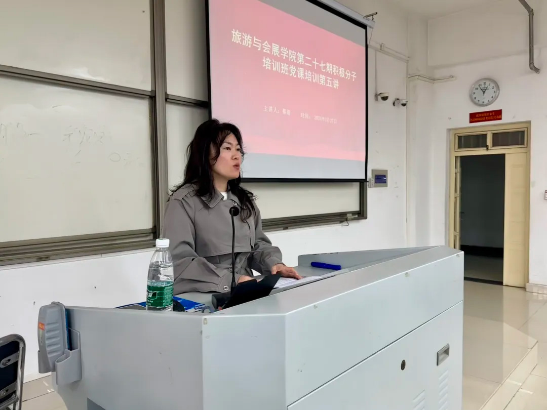 3月27日,旅游与会展于教学科研楼A座104教室开展第27期积极分子培训班党课培训第五讲。学院团委书记蔡萌担任主讲人,第27期积极分子培训班全体同学到场参加。