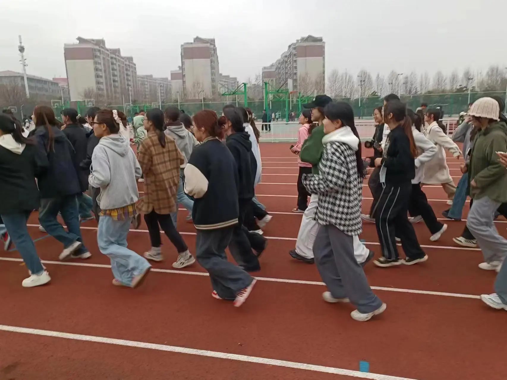 操场上,来自不同学院的学生以班级为单位进行集体形式的长跑比赛。在充分热身后,本次比赛正式拉开帷幕。尽管雨后稍显潮湿的地面和较长的赛程令不少同学跑得十分吃力,但他们仍在赛道上奋力奔跑。在彼此鼓励、相互打气的热闹氛围中,最终没有掉队情况的发生。最后,在同学们的积极配合下,学院参赛班级顺利完成了本次的班级长跑比赛。