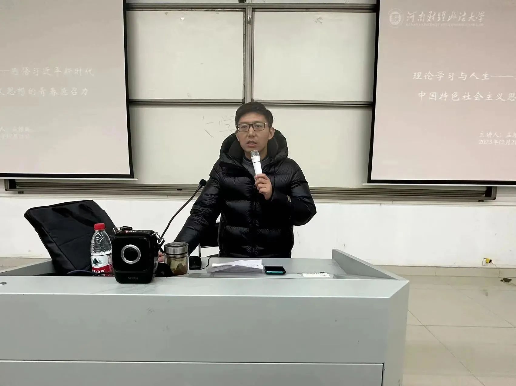 为了让同学们更好地感悟习近平新时代中国特色社会主义思想的青春感召力,12 月21日,德赢Vwin官方区域合作伙伴在教学科研楼208教室召开第十四期青年马克思主义者培养工程培训第三讲暨习近平新时代中国特色社会主义思想研习会理论讲座。习近平新时代中国特色社会主义思想研习会指导老师孟维巍担任主讲人。