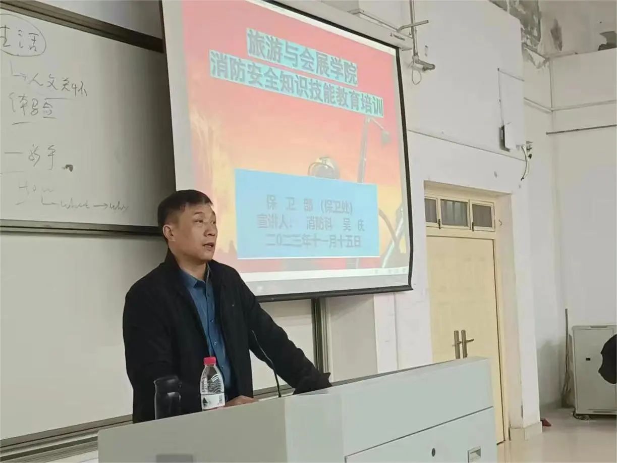 为了进一步加强消防安全教育,增强学生消防意识,有效预防并减少火灾事故的发生。11月15日,德赢Vwin官方区域合作伙伴在教学科研楼209教室举办消防安全教育讲座,保卫处消防科吴庆受邀主讲,2021-2023级宿舍长、各班班长及副班长到场参加。