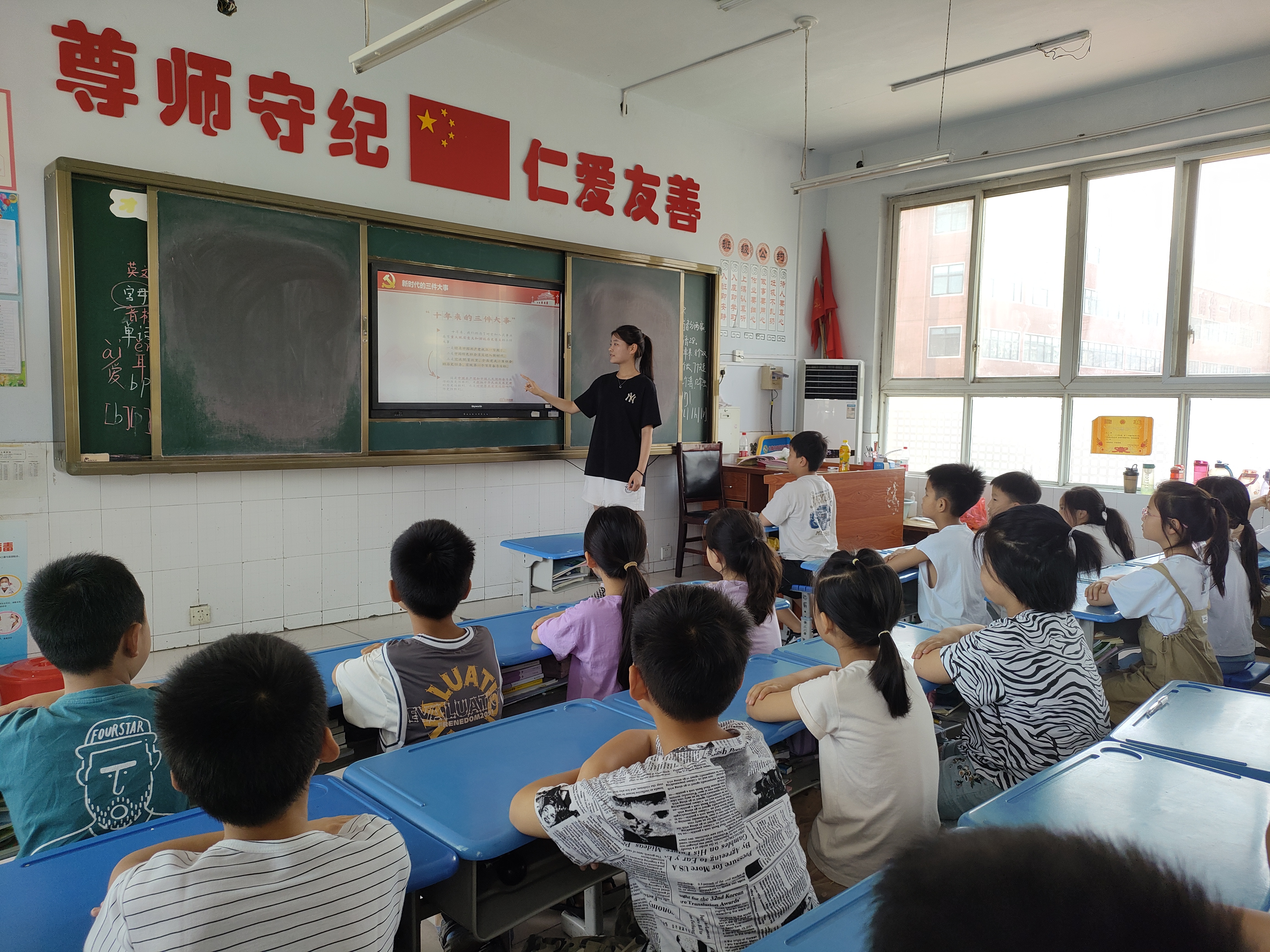 实践成员张尼娜、李瑾分别前往驻马店市驿城区第三中学和长葛市双语实验小学,向学生讲述近年来党的伟大成就和党的二十大精神,告诉学生热爱党和国家的理由,通过列举科学巨匠于敏、袁隆平等典范的事迹,鼓舞学生要大力弘扬科学家精神,引起现场学生的强烈共鸣。队员们也向同学们传达了习近平总书记对新时代中国青年的殷切期望,激励学生们坚定不移跟党走,立志向、练本领,承担起民族复兴的时代重任。