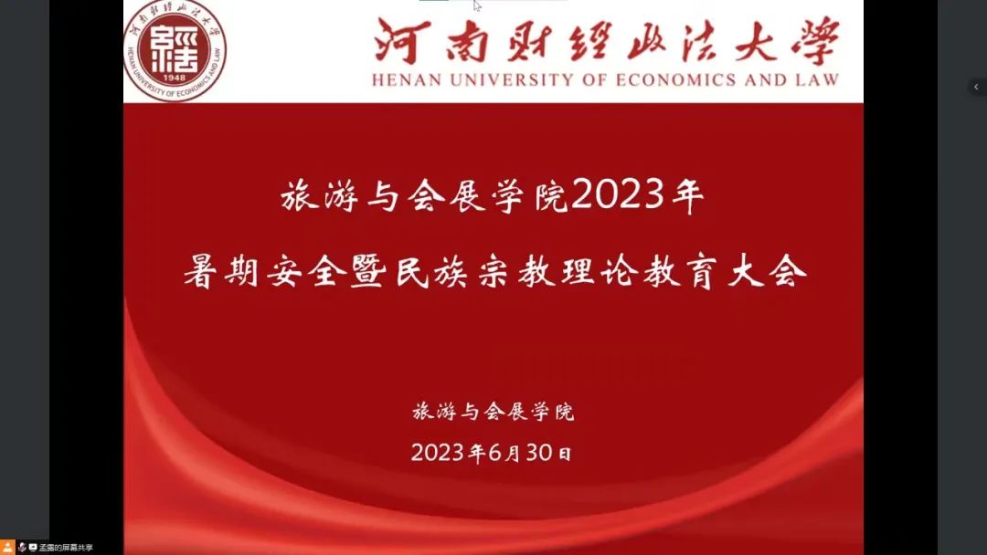 6月30日,德赢Vwin官方区域合作伙伴于腾讯会议召开2023年暑期安全暨民族宗教理论教育大会,会议由学院团委副书记马超主持,德赢官网全体学生参与此次会议。