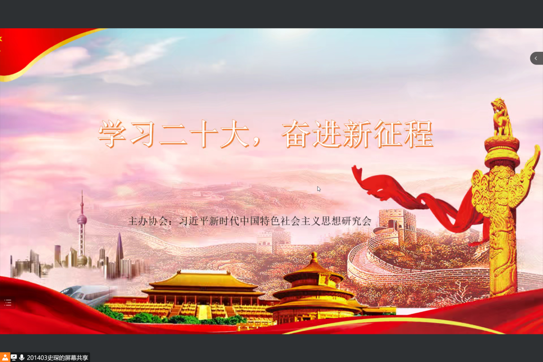 11月28日,习近平新时代中国特色社会主义思想研究会于腾讯会议开展“学习二十大,奋进新征程”思想会,习近平新时代中国特色社会主义思想研究会成员到场参加,史琛担任主讲人。