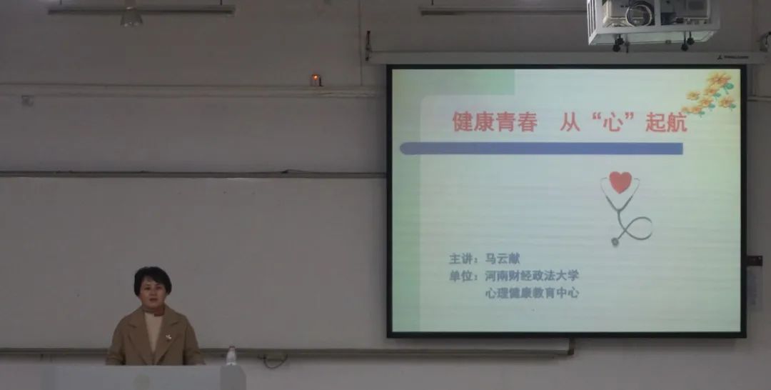 课上,马云献围绕“健康青春,从心起航”的主题,提出心理健康教育的目标是提高全体学生的心理素质,培养学生乐观、向上的心理品质。她通过案例分析抑郁、焦虑等心理疾病的源头、特点及其影响因素,并表示,认知是保持内心和谐的关键,每一名同学要树立正确的价值观,正视心理压力,明确人生目标,实现良性循环,要以“风声雨声读书声声声入耳”的态度,做到“家事国事天下事事事关心”。