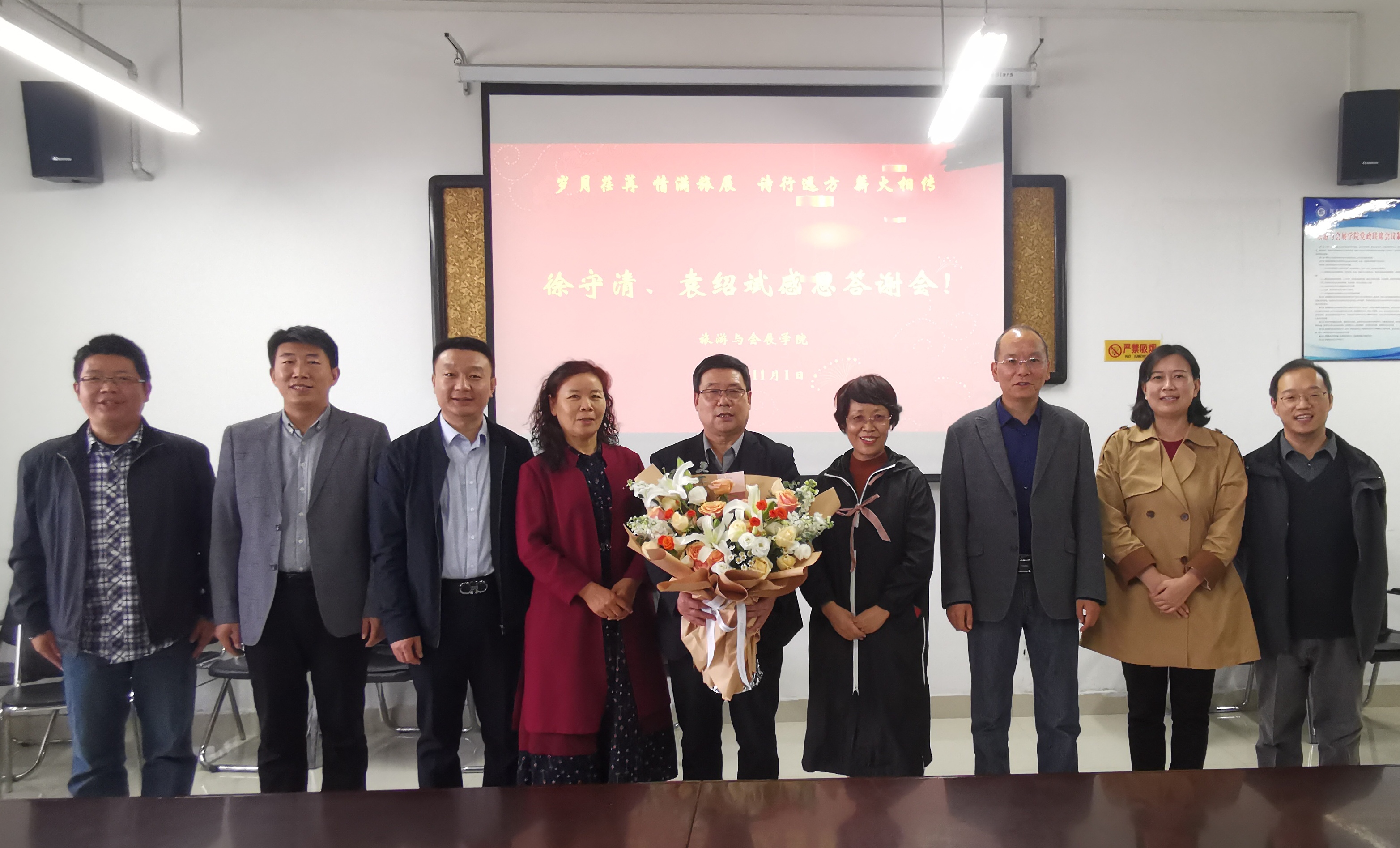 会上,学院全体教师一起回顾了两位退休教师的教学生涯,共同见证了他们的教育初心。徐守清书记分享了在学院工作生活的点点滴滴,他表示会继续关心学院的发展和进步,也衷心祝愿学院发展日新月异。袁绍斌老师表达了对学院领导和同事们的感激以及对学院的眷恋之情,并为学院提出了一些建设性建议。最后,学院领导对两位教师表达感谢,并对退休教师认真、勤恳的工作态度给予了高度评价。
