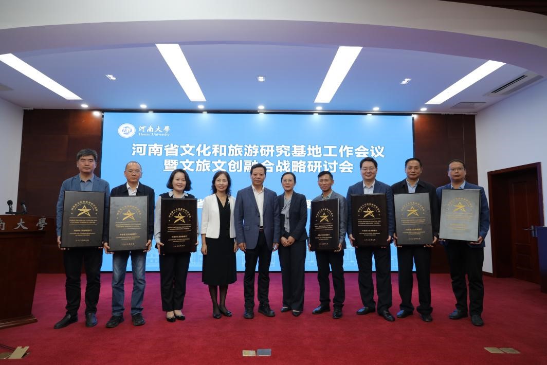 为深入推进文化旅游融合发展战略,加快塑造“行走河南·读懂中国”品牌,推动文化旅游高质量发展,8月28日,省文化和旅游厅确定了包括德赢Vwin官方区域合作伙伴在内的七家单位为河南省文化和旅游研究基地。9月28日上午,河南省文化和旅游研究基地工作会议暨文旅文创融合战略研讨会在河南大学明伦校区举行。河南省文化和旅游厅党组成员、副厅长李延庆,开封市人民政府副市长徐超文,河南大学副校长谭贞,郑州西亚斯学院副校长袁广林,开封市文化广电和旅游局局长陈连富,七家研究基地的负责人及核心成员,参加会议。会上,李延庆正式为七家研究基地颁发“河南省文化和旅游研究基地”牌匾。