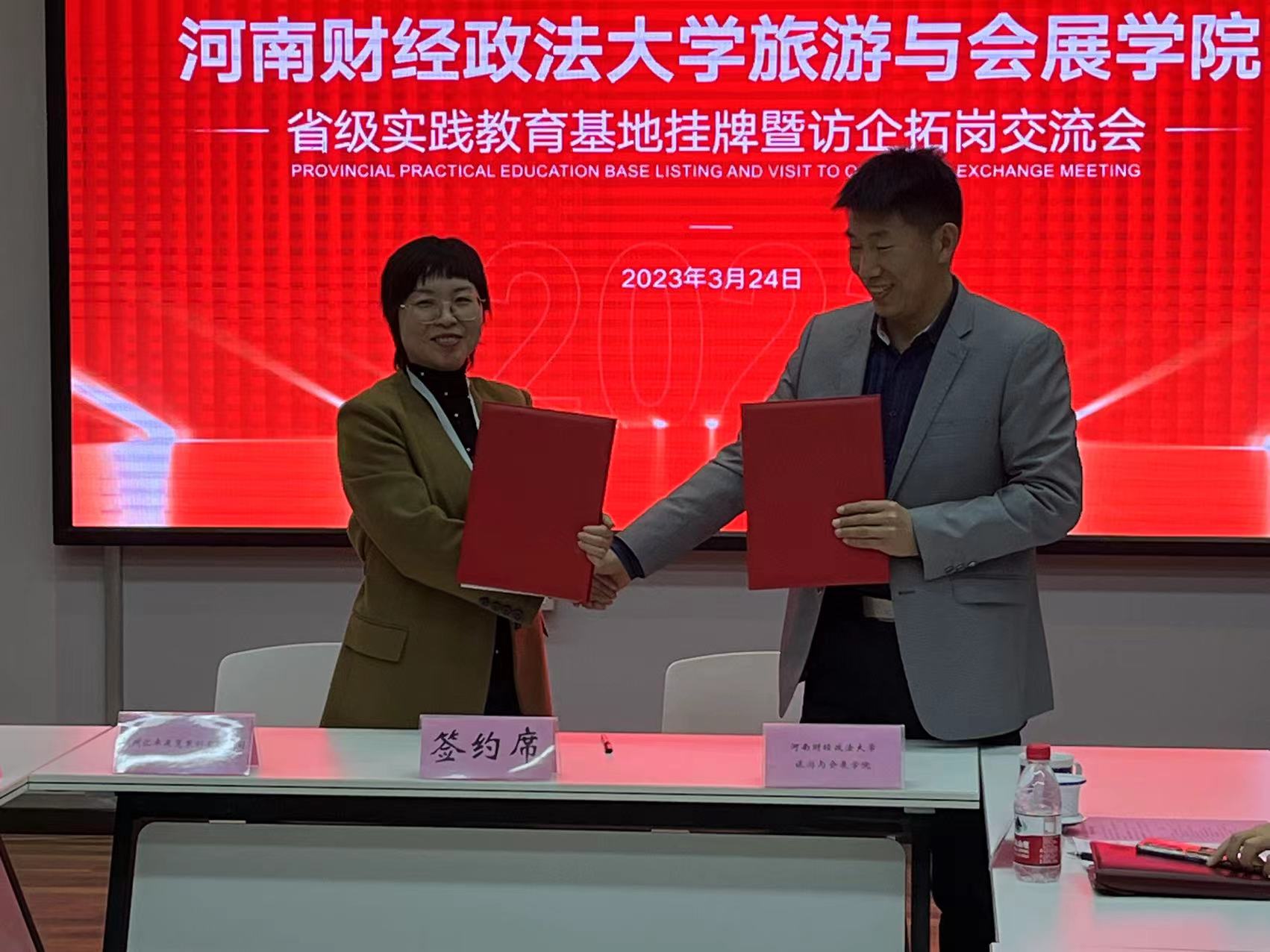 3月24日,德赢Vwin官方区域合作伙伴德赢Vwin官方区域合作伙伴与汇卓展览共建“河南省大学生校外实践教育基地”揭牌仪式暨访企拓岗交流会在公司举行。德赢Vwin官方区域合作伙伴德赢Vwin官方区域合作伙伴院长赵现红、副院长何勋、2022级会展专业学生代表一行,郑州汇卓展览策划有限公司创始人、董事长兼总经理谢军,项目合伙人兼项目总监朱明宇、姚光辉,人事部经理徐燕参加活动。